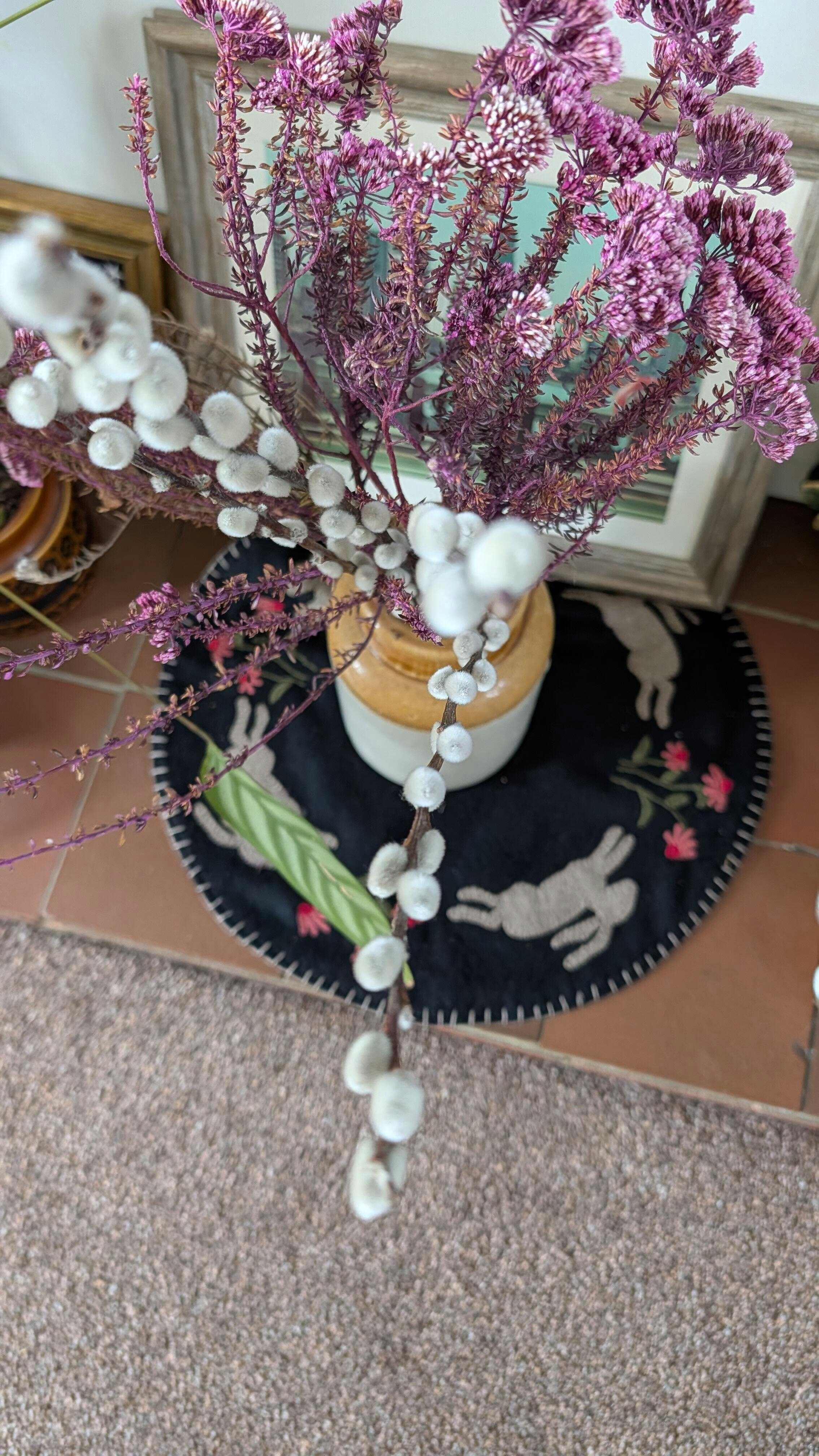 Crafted from a soft wool and cotton blend, this candle placement is ideal for holding pillar candles, tealights, or small decorative accents. Its primitive folk aesthetic pairs beautifully with rustic, farmhouse, and cottage-style interiors, making it a timeless piece you’ll enjoy bringing out year after year.